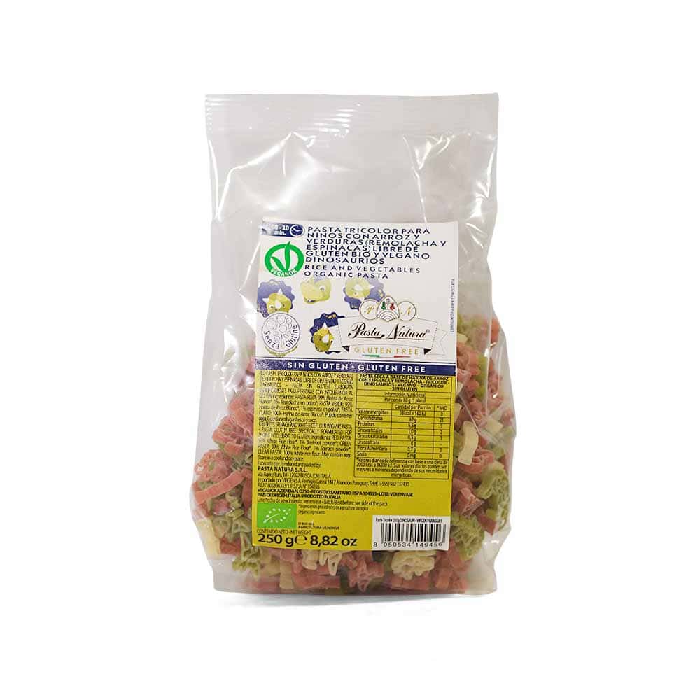 Natura dry tricolor pasta for children with rice and vegetables, Gluten-free Dinosaur