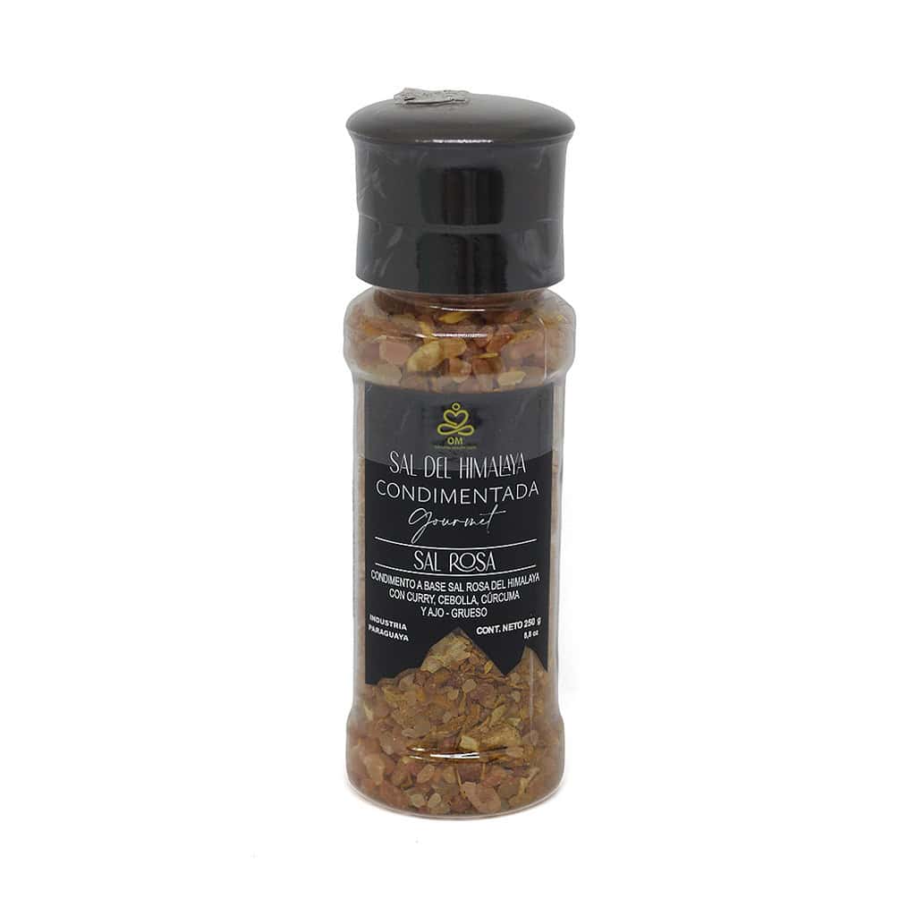 OM Coarse Himalayan Pink Salt (Iodized) – Grinder – Curry, Onion, Turmeric & Garlic Base